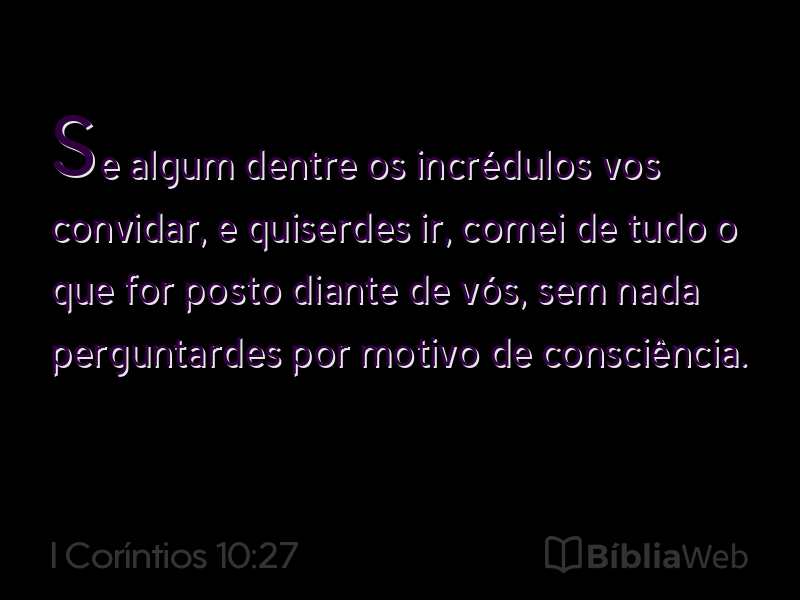 Versículo 27 de I Coríntios 10 da Bíblia. Almeida Revisada e Atualizada (1993)