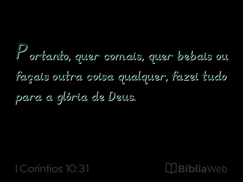 Versículo 31 de I Coríntios 10 da Bíblia. Almeida Revisada e Atualizada (1993)