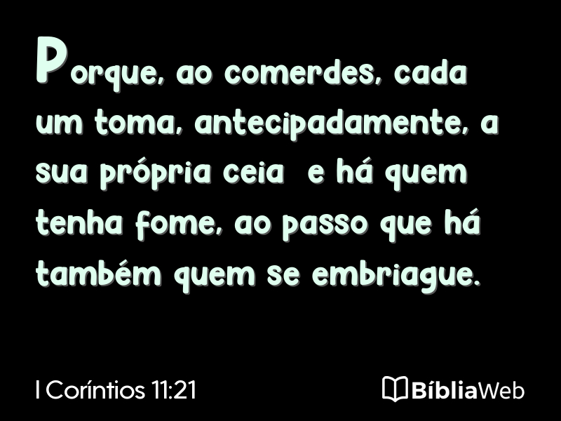 Versículo 21 de I Coríntios 11 da Bíblia. Almeida Revisada e Atualizada (1993)