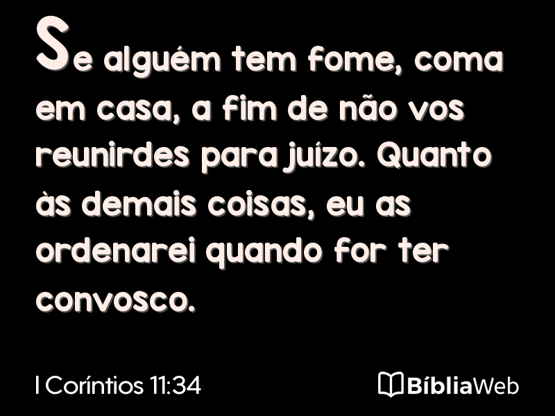 Versículo 34 de I Coríntios 11 da Bíblia. Almeida Revisada e Atualizada (1993)