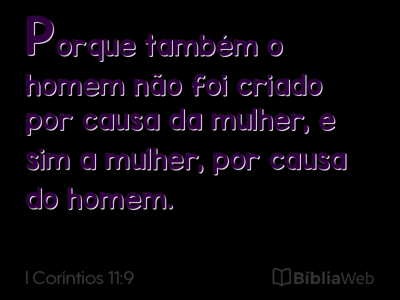 Versículo 9 de I Coríntios 11 da Bíblia. Almeida Revisada e Atualizada (1993)