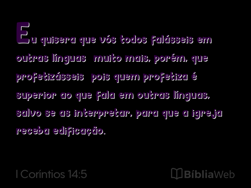 Versículo 5 de I Coríntios 14 da Bíblia. Almeida Revisada e Atualizada (1993)