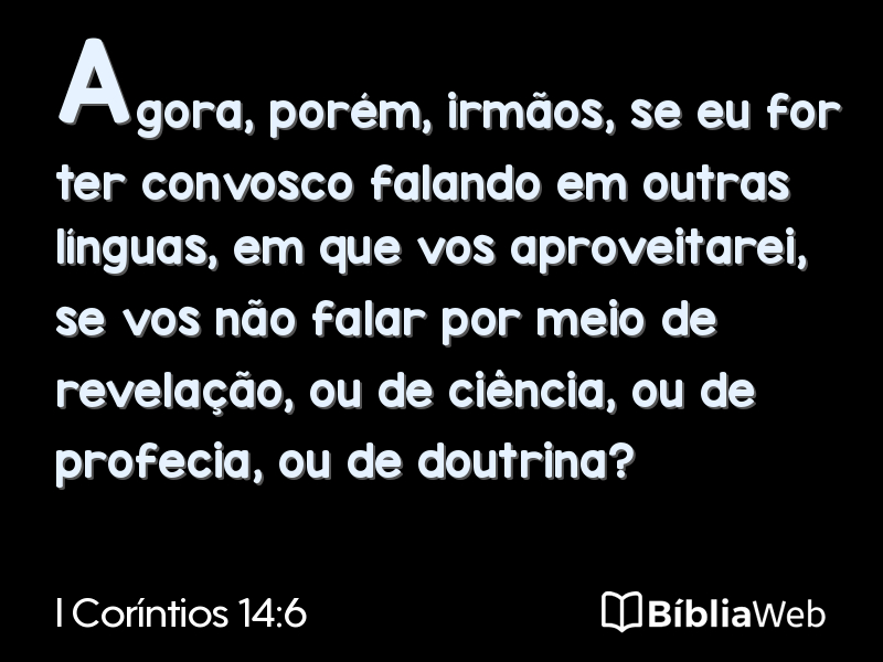 Versículo 6 de I Coríntios 14 da Bíblia. Almeida Revisada e Atualizada (1993)