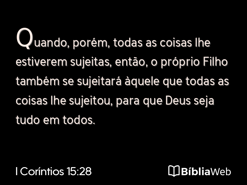 28Quando, porém, todas as coisas lhe estiverem sujeitas, então, o próprio Filho também se sujeitará àquele que todas as coisas lhe sujeitou, para que Deus seja tudo em todos.