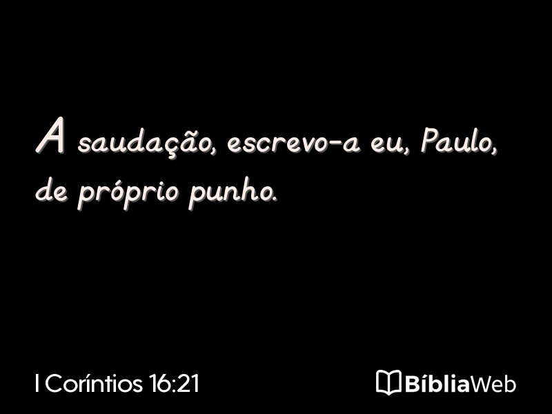 Versículo 21 de I Coríntios 16 da Bíblia. Almeida Revisada e Atualizada (1993)