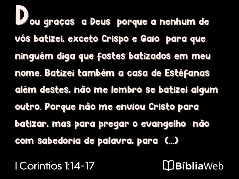 Versículos 14 a 17 de I Coríntios 1 da Bíblia. Almeida Revisada e Atualizada (1993)