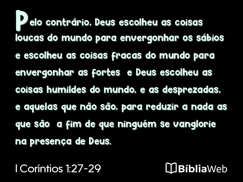 Versículos 27 a 29 de I Coríntios 1 da Bíblia. Almeida Revisada e Atualizada (1993)