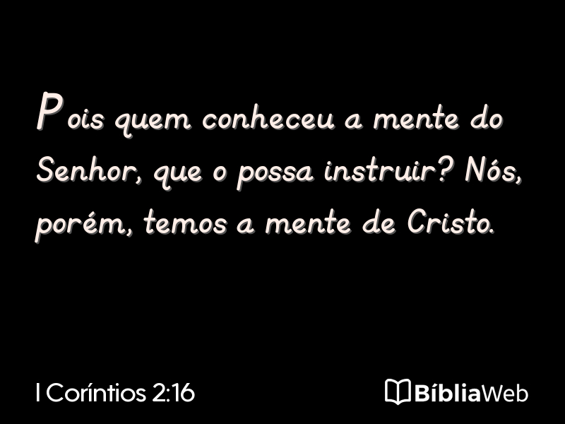 Versículo 16 de I Coríntios 2 da Bíblia. Almeida Revisada e Atualizada (1993)
