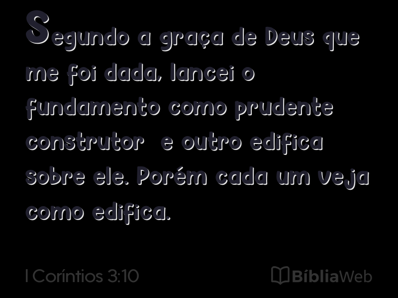 Versículo 10 de I Coríntios 3 da Bíblia. Almeida Revisada e Atualizada (1993)