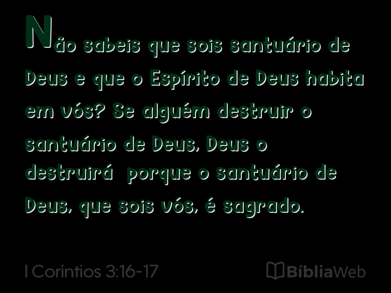 Versículos 16 a 17 de I Coríntios 3 da Bíblia. Almeida Revisada e Atualizada (1993)