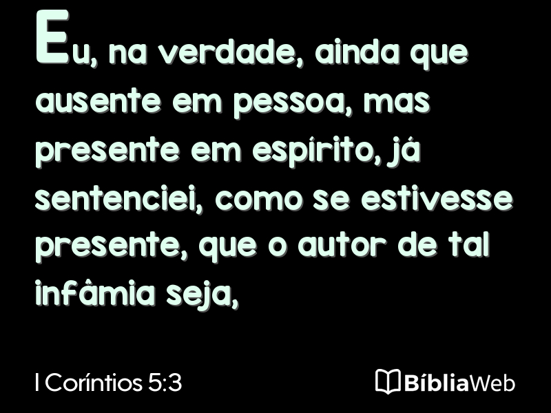 Versículo 3 de I Coríntios 5 da Bíblia. Almeida Revisada e Atualizada (1993)