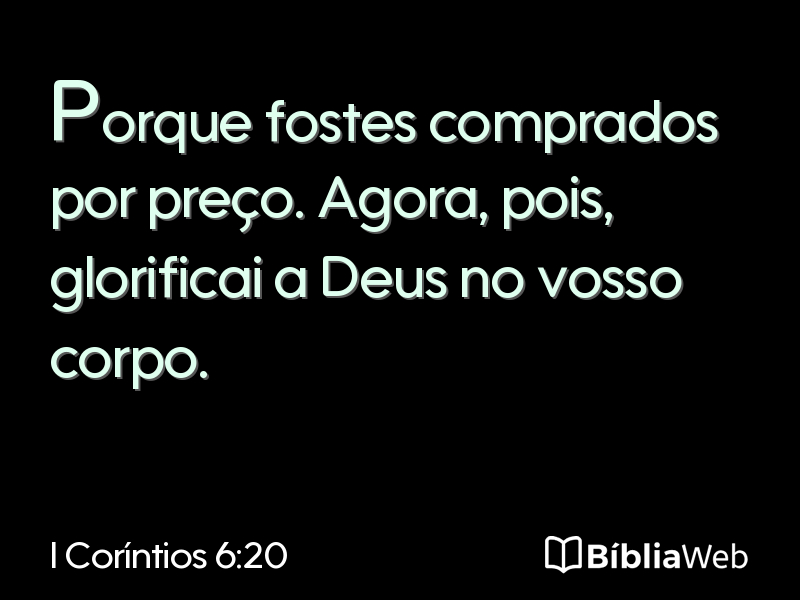 Versículo 20 de I Coríntios 6 da Bíblia. Almeida Revisada e Atualizada (1993)