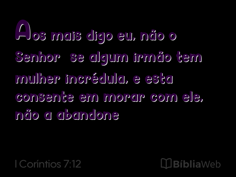 Versículo 12 de I Coríntios 7 da Bíblia. Almeida Revisada e Atualizada (1993)