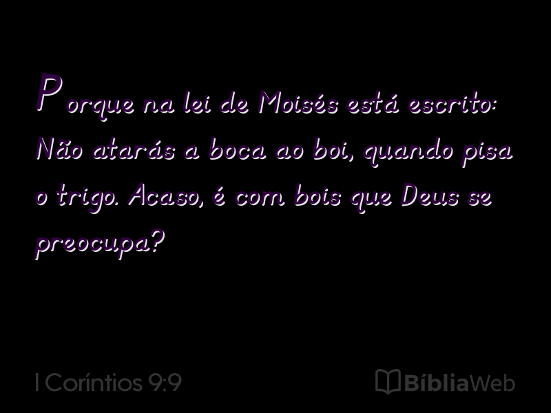 Versículo 9 de I Coríntios 9 da Bíblia. Almeida Revisada e Atualizada (1993)