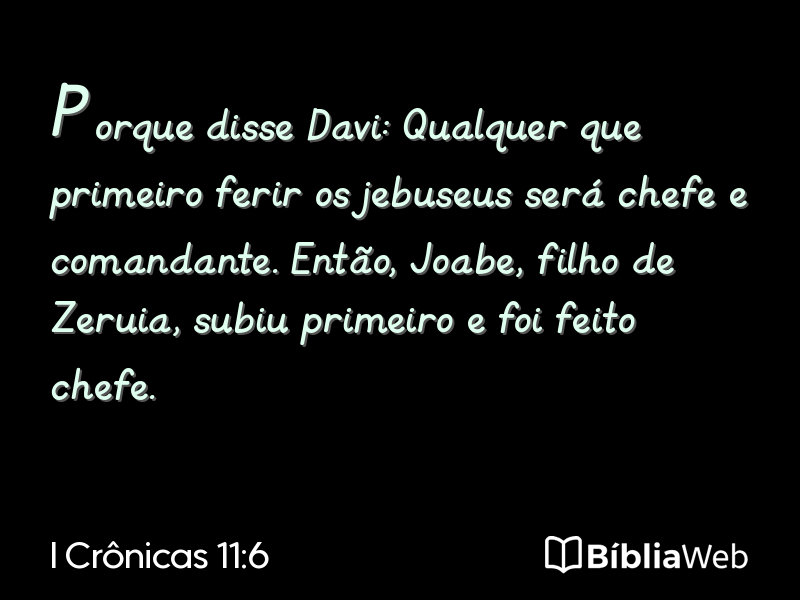 Versículo 6 de I Crônicas 11 da Bíblia. Almeida Revisada e Atualizada (1993)