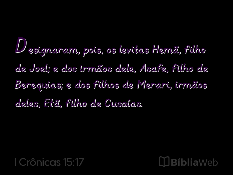 Versículo 17 de I Crônicas 15 da Bíblia. Almeida Revisada e Atualizada (1993)