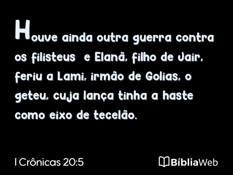 Versículo 5 de I Crônicas 20 da Bíblia. Almeida Revisada e Atualizada (1993)
