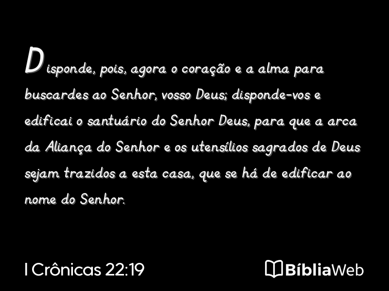 Versículo 19 de I Crônicas 22 da Bíblia. Almeida Revisada e Atualizada (1993)