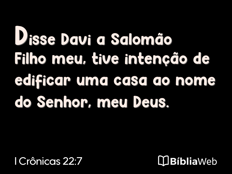 Versículo 7 de I Crônicas 22 da Bíblia. Almeida Revisada e Atualizada (1993)