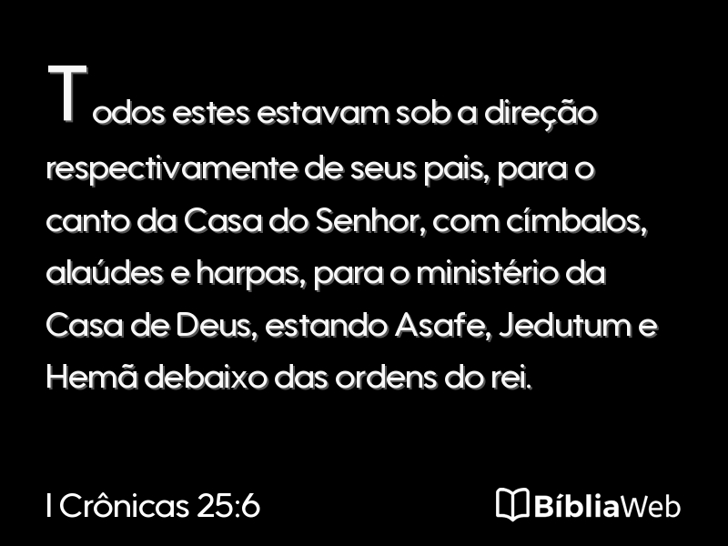 Versículo 6 de I Crônicas 25 da Bíblia. Almeida Revisada e Atualizada (1993)