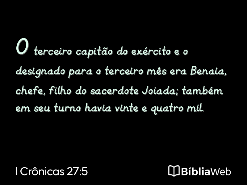 Versículo 5 de I Crônicas 27 da Bíblia. Almeida Revisada e Atualizada (1993)