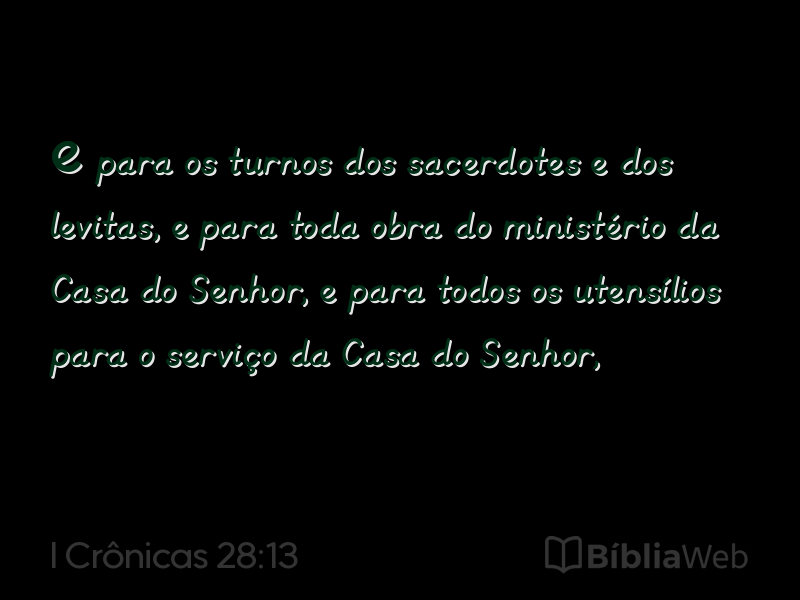 Versículo 13 de I Crônicas 28 da Bíblia. Almeida Revisada e Atualizada (1993)