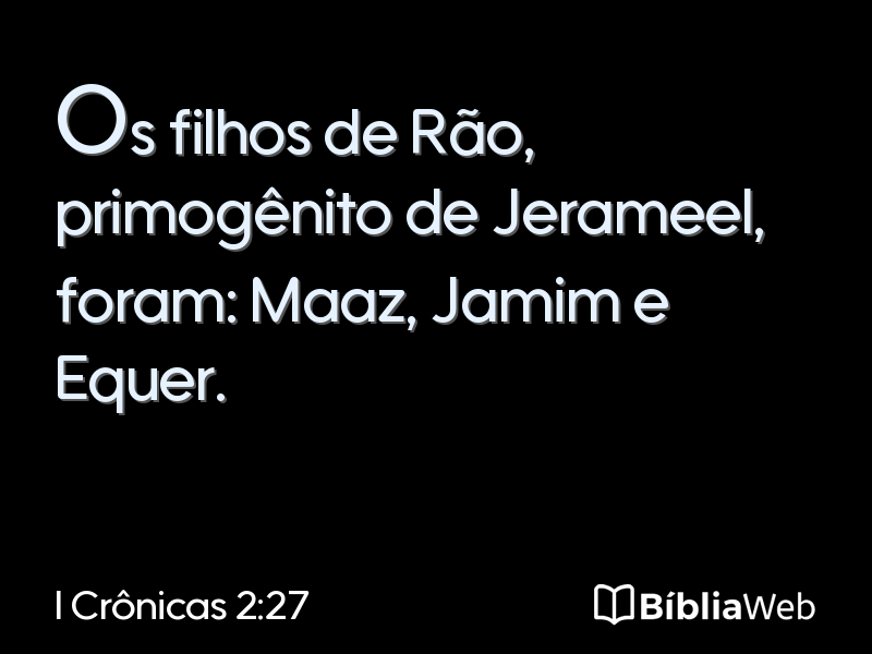 Versículo 27 de I Crônicas 2 da Bíblia. Almeida Revisada e Atualizada (1993)