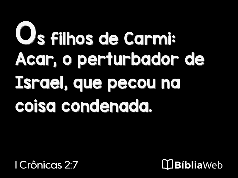 Versículo 7 de I Crônicas 2 da Bíblia. Almeida Revisada e Atualizada (1993)