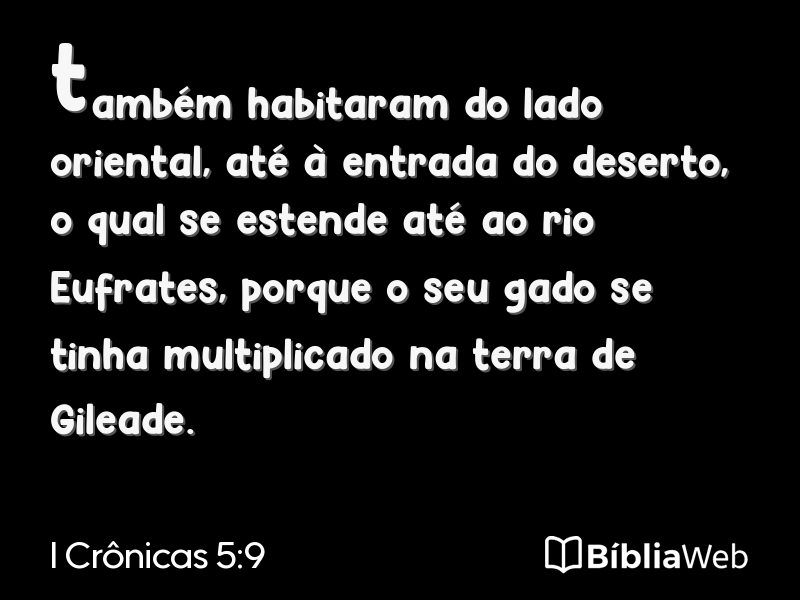 Versículo 9 de I Crônicas 5 da Bíblia. Almeida Revisada e Atualizada (1993)