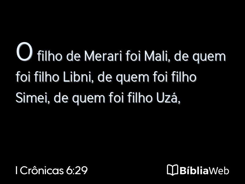Versículo 29 de I Crônicas 6 da Bíblia. Almeida Revisada e Atualizada (1993)