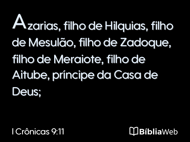 Versículo 11 de I Crônicas 9 da Bíblia. Almeida Revisada e Atualizada (1993)