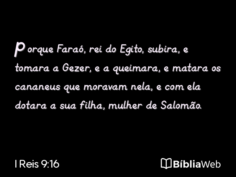 Versículo 16 de I Reis 9 da Bíblia. Almeida Revisada e Atualizada (1993)