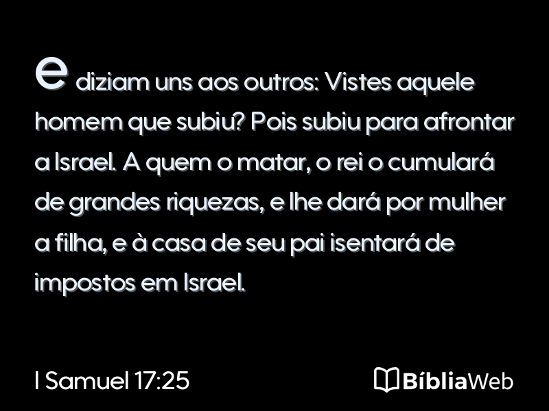 Versículo 25 de I Samuel 17 da Bíblia. Almeida Revisada e Atualizada (1993)