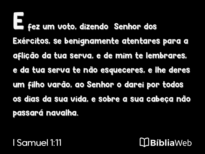 Versículo 11 de I Samuel 1 da Bíblia. Almeida Revisada e Atualizada (1993)