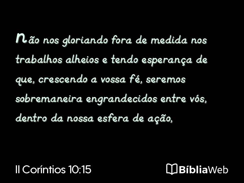 Versículo 15 de II Coríntios 10 da Bíblia. Almeida Revisada e Atualizada (1993)