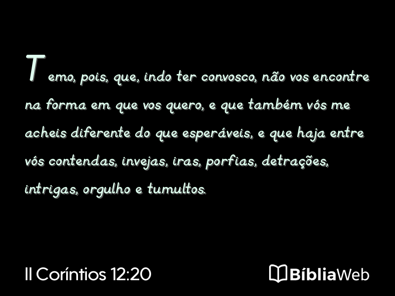 Versículo 20 de II Coríntios 12 da Bíblia. Almeida Revisada e Atualizada (1993)