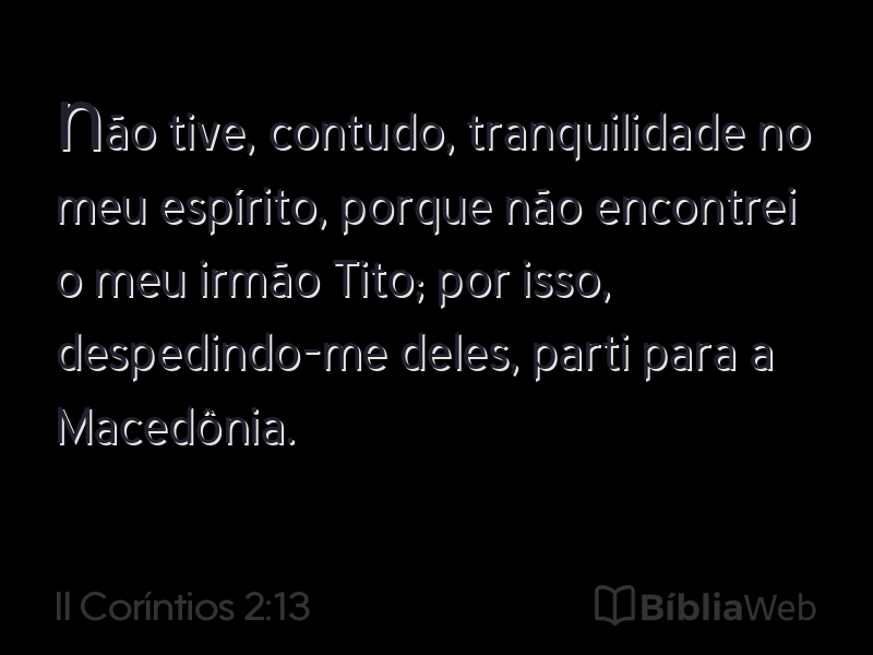 Versículo 13 de II Coríntios 2 da Bíblia. Almeida Revisada e Atualizada (1993)