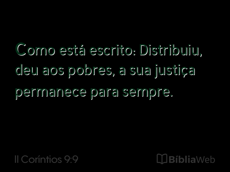 Versículo 9 de II Coríntios 9 da Bíblia. Almeida Revisada e Atualizada (1993)