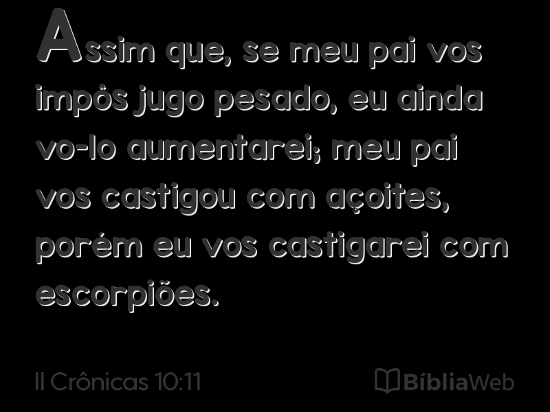 Versículo 11 de II Crônicas 10 da Bíblia. Almeida Revisada e Atualizada (1993)