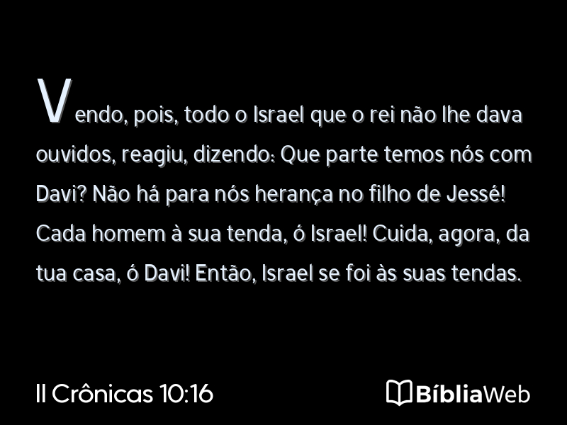 Versículo 16 de II Crônicas 10 da Bíblia. Almeida Revisada e Atualizada (1993)