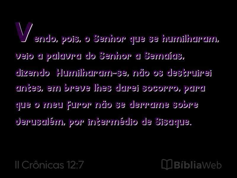 Versículo 7 de II Crônicas 12 da Bíblia. Almeida Revisada e Atualizada (1993)