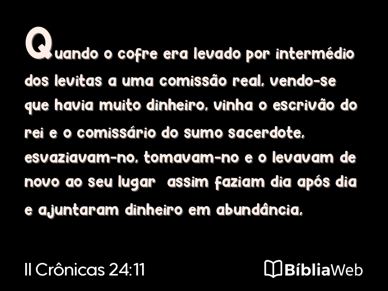 Versículo 11 de II Crônicas 24 da Bíblia. Almeida Revisada e Atualizada (1993)