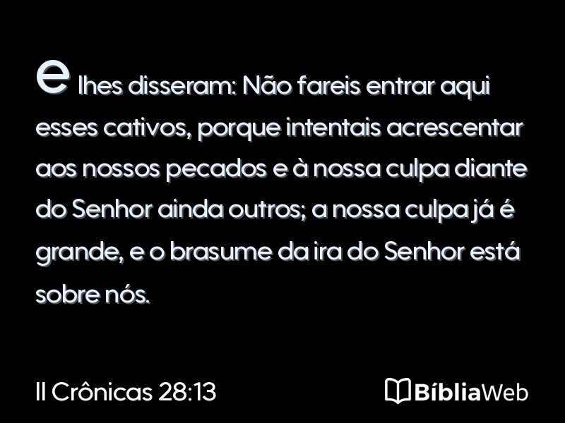 Versículo 13 de II Crônicas 28 da Bíblia. Almeida Revisada e Atualizada (1993)