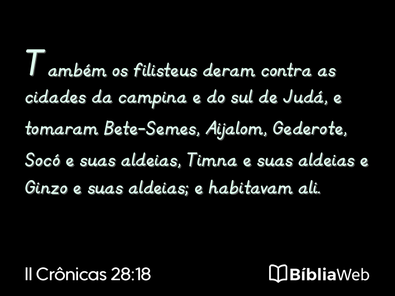Versículo 18 de II Crônicas 28 da Bíblia. Almeida Revisada e Atualizada (1993)