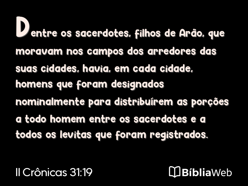 Versículo 19 de II Crônicas 31 da Bíblia. Almeida Revisada e Atualizada (1993)