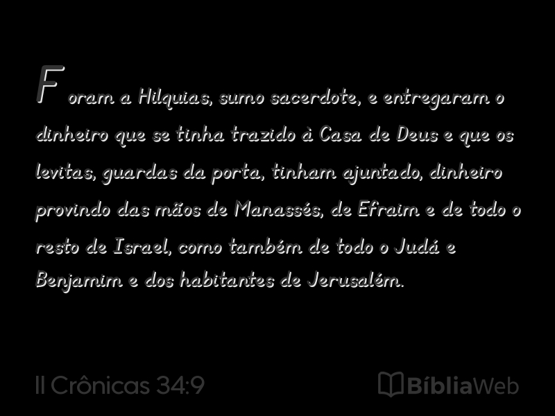 Versículo 9 de II Crônicas 34 da Bíblia. Almeida Revisada e Atualizada (1993)