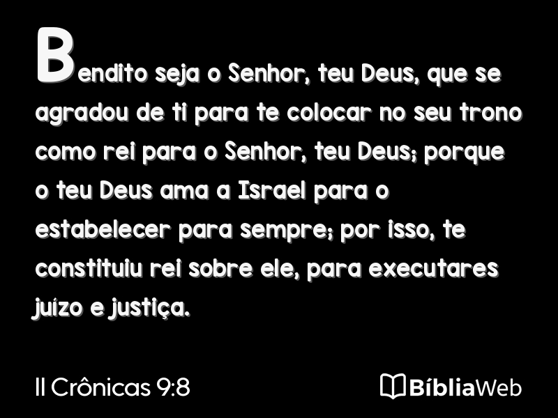 Versículo 8 de II Crônicas 9 da Bíblia. Almeida Revisada e Atualizada (1993)