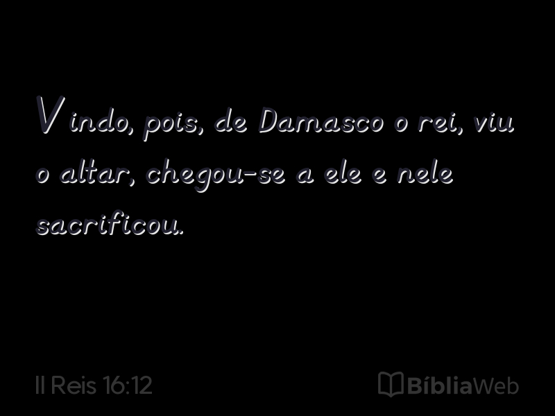 Versículo 12 de II Reis 16 da Bíblia. Almeida Revisada e Atualizada (1993)