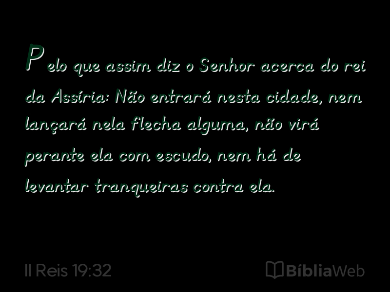 Versículo 32 de II Reis 19 da Bíblia. Almeida Revisada e Atualizada (1993)