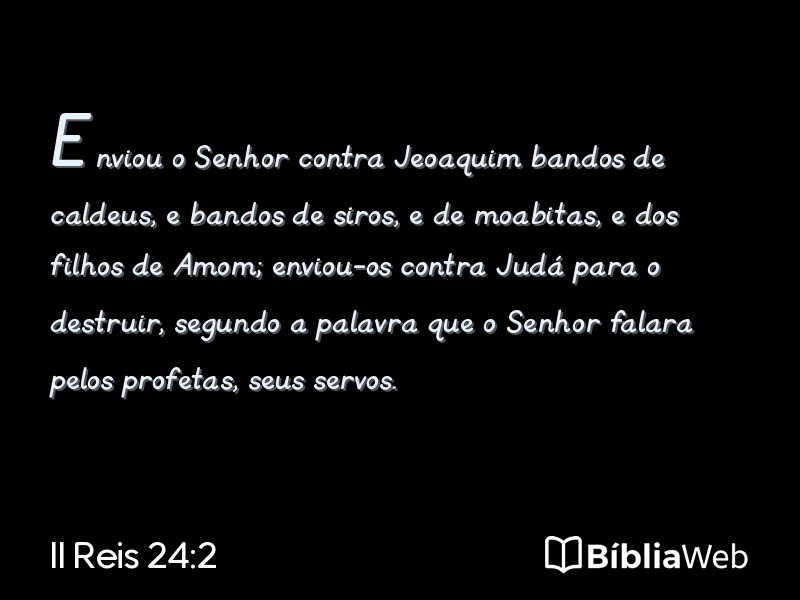 2Enviou o Senhor contra Jeoaquim bandos de caldeus, e bandos de siros, e de moabitas, e dos filhos de Amom; enviou-os contra Judá para o destruir, segundo a palavra que o Senhor falara pelos profetas, seus servos.